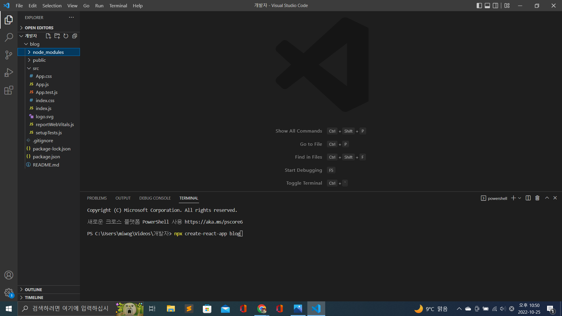 해당 명령어를 입력 시에 blog라는 리액트 폴더가 생긴걸 확인 할 수 있다.