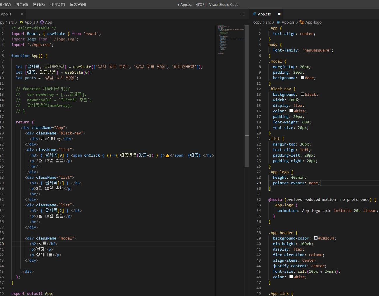 | 코딩애플 - 무작정 React 찍먹하기 -1- (리액트 설치와 셋팅법 2022+ 스타일) (0) | 2022.09.27 |