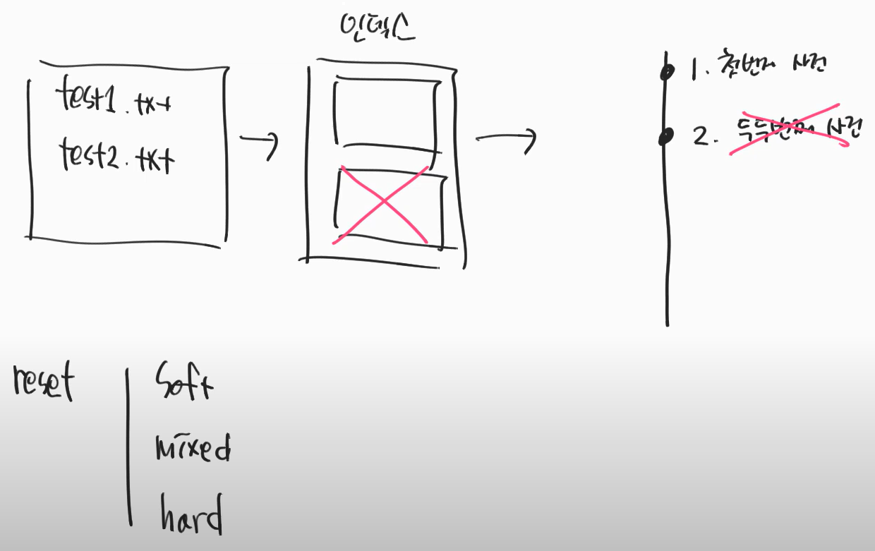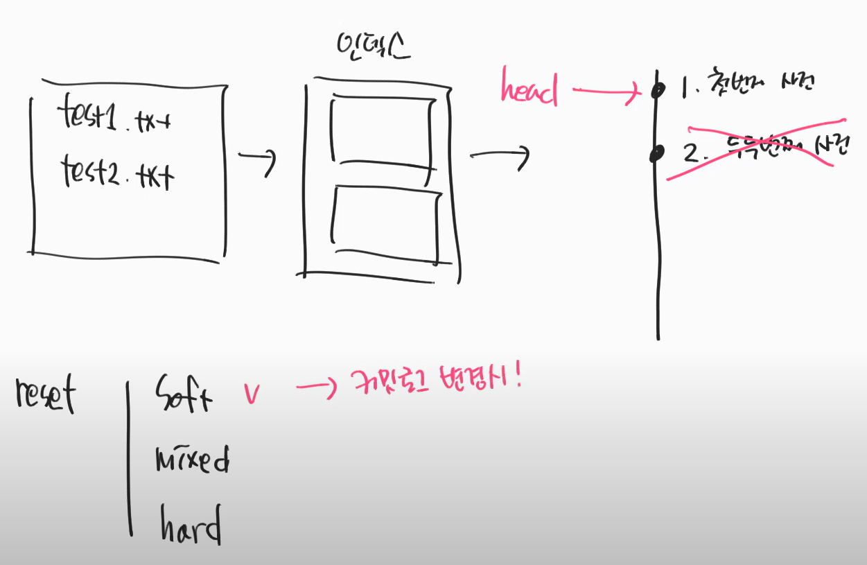 그러면 다시 수정 후 add, commit 해 주면 기존에 내용이 살아있는 상태에서 수정한 상태가 들어가게 된다. mixed는 영상 강의자는 별로 현업에서 안써봤데.. 아마 사용빈도가 hard, soft, mixed 순인듯.