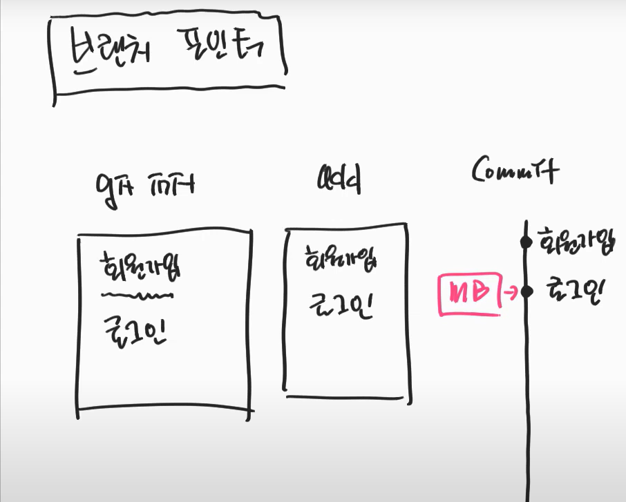 기본적으로 init, add, commit을 하면 branch가 사실은 생기는게 아니라. 원래 존재하는 곳에 회원가입 이라는 점이 생긴다. 그리고 main branch pointer가 그 것을 바라보게 된다. 그리고 로그인을 동일하게 생성하면 MB가 로그인으로 옮겨가게 된다.